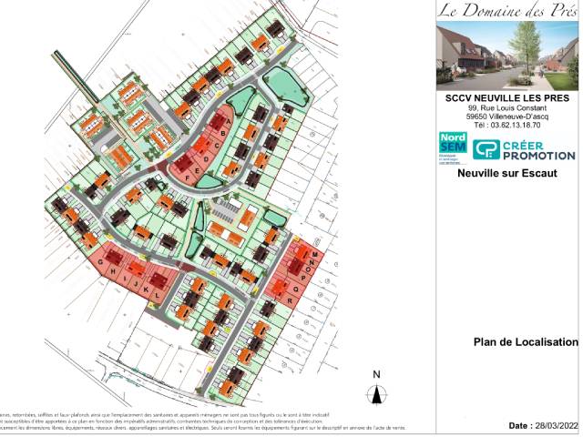 Situé à 15 minute de Valenciennes et de Cambrai, le Domaine des prés est un programme immobilier de maisons neuves. Chaque maison dispose d’un jardin privatif clôturé et engazonné et d’un garage. Les maisons offrent 3 ou 4 chambres.